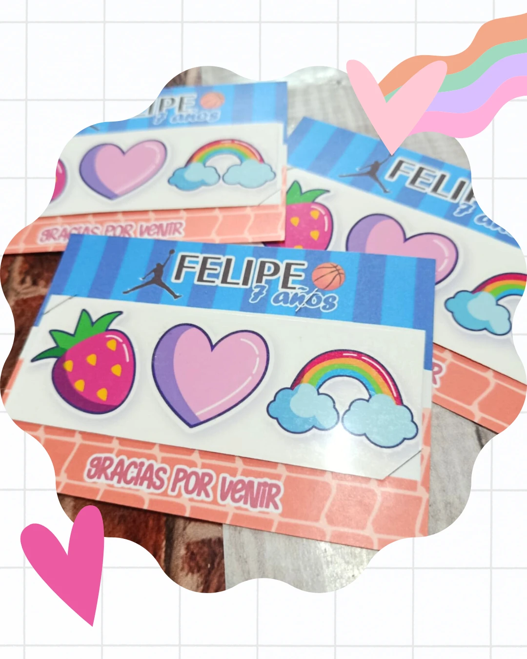 Trio de tatuajes temporales personalizados, incluye envoltorio.