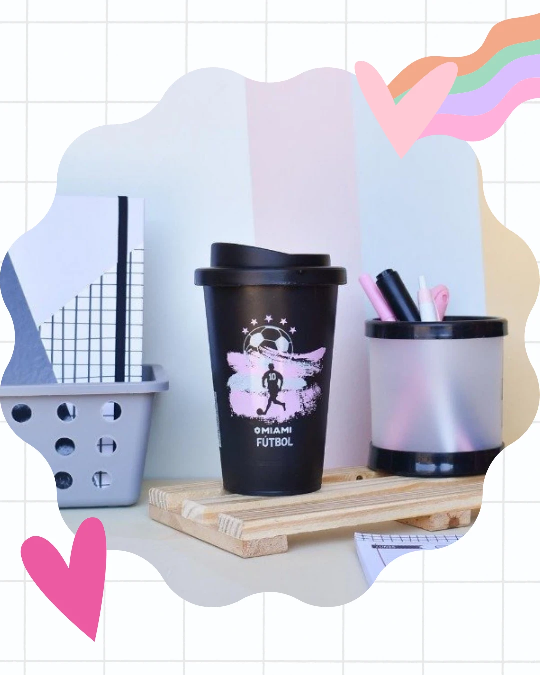 Vaso de café doble capa con estampas de Miami - Messi